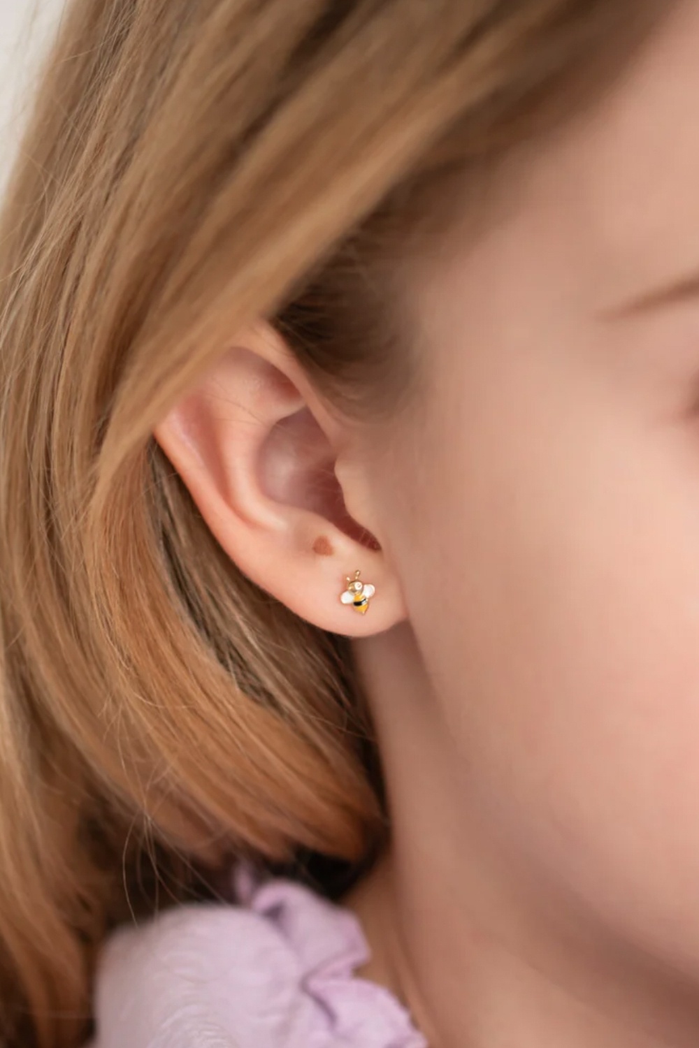 Acesti delicati cercei cu albinute din email sunt adorabili. Un mic set de cercei cu inchidere pe filet, care vor impodobi delicat urechile fetitei tale.